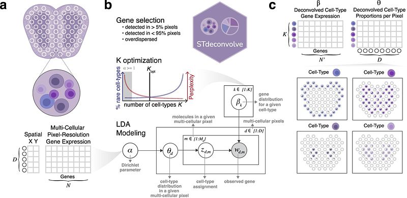 Miller, B. F., Huang, F., Atta, L., Sahoo, A., & Fan, J. (2022). Reference-free cell type deconvolution of multi-cellular pixel-resolution spatially resolved transcriptomics data. Nature Communications, 13, 1–13.
